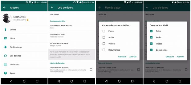 • Ahorra datos en tu móvil con estas configuraciones que puedes realizar en tu aplicación de WhatsApp.Sucede que no todo el tiempo solemos tener una conexión de internet muy rápida, ni mucho menos tenemos megas o datos para regalar, por lo que el consumo de estos es muy valorado, ya que constantemente estamos evitando quedarnos sin datos para navegar, es por ello que siempre buscamos la manera de ahorrar datos a como de lugar, hoy les explicaremos como evitar las descargas automáticas de vídeos, fotos y audios en el rey de la mensajería instantánea como lo es: WhatsApp.