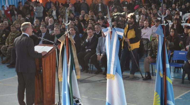 El mandatario acompañó al intendente local, Ricardo Britapaja, en la ceremonia oficial que se desarrolló por la mañana en el Gimnasio Municipal N° 1. También participaron el diputado nacional, Gustavo Mena; los ministros de Hidrocarburos, Martín Cerdá, y de Turismo, Néstor Garcia; el presidente del Instituto Provincial de la Vivienda (IPV), Carlos Simionati; el Comandante de la IX Brigada Mecanizada, general de Brigada Néstor D’Ambra; los intendentes de Río Mayo, Gustavo Hermida, y de Rada Tilly, Luis Juncos; jefes comunales; funcionarios provinciales y municipales; diputados provinciales; vecinos e instituciones de la localidad.