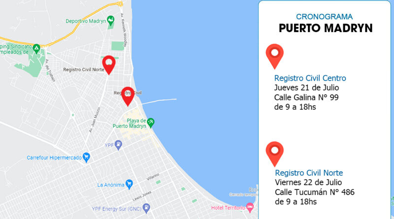 El Gobierno provincial, a través de la Dirección General de Registro Civil y Capacidad de las Personas, comenzará esta semana la Campaña de Documentación en Puerto Madryn. El equipo operativo estará trabajando el jueves 21 en el Registro Civil de zona centro, con ubicación en Galina N° 99. En tanto el viernes 22, la campaña se desarrollará en el Registro Civil de zona norte por calle Tucumán N° 486.