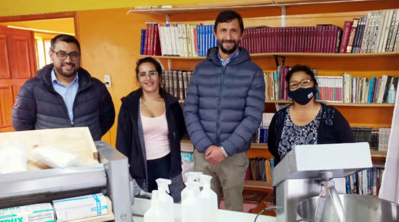 El intendente de Trevelin, Héctor «Cano» Ingram, junto al delegado Titular de la sede local de la Mutual Conexión, Facundo País entregaron una amasadora y una sobadora industriales al Comedor de Barrio Malvinas, que funciona en el Centro Comunitario de ese Barrio. Además. También se proveyó de termómetros infrarrojos; guantes de latex, barbijos y rociadores.