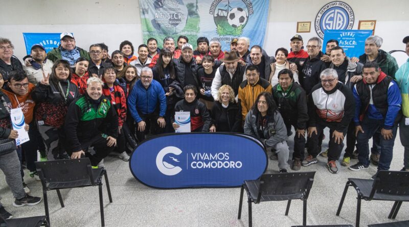 Los funcionarios municipales también estuvieron presentes en el acto del acuerdo apoyo para la Asociación de Veteranos de Fútbol de Comodoro Rivadavia en el club Belgrano. Los aportes económicos serán destinados a la organización del torneo local y a los clubes que participarán del Torneo Nacional de Veteranos.