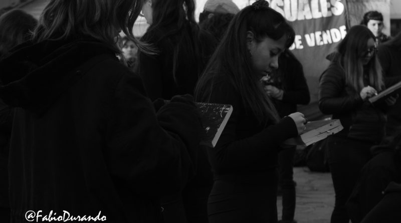 En fotografías la performance que realizaron los estudiantes del IES N° 818 de la ciudad de Esquel en el marco de protestas que están llevando adelante los trabajadores estatales. Fotografías: @fabiodurando