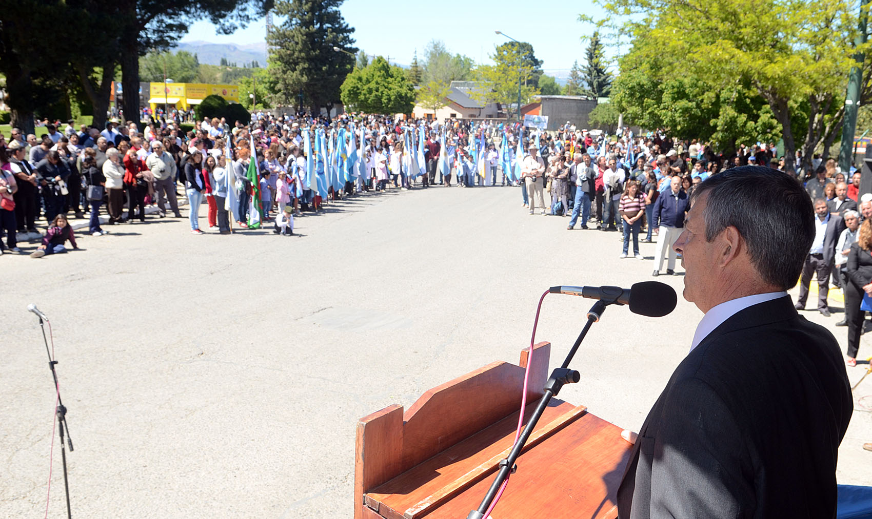 El acto estuvo encabezado por el gobernador de la Provincia, Martin Buzzi y el intendente de la ciudad, Juan Garitano, acompañados por autoridades provinciales, municipales, concejales, cívico militar y miembros de asociaciones civiles. Cabe mencionar que la plaza coronel Fontana fue escenario del tradicional desfile donde participa toda la comunidad a través de las diferentes instituciones de la ciudad de Trevelin y sus parajes.