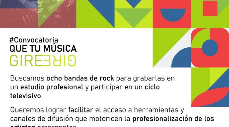 El Gobierno de la Provincia, a través de la Secretaría de Ciencia, Tecnología, Innovación Productiva y Cultura, invita a todas las personas interesadas a inscribirse en la convocatoria “Que tu Música Gire”, lanzada por la Subsecretaría de Cultura. La misma tiene como finalidad generar un ciclo televisivo con bandas emergentes, junto a un espacio de capacitación para músicos en general, y así facilitar el acceso a herramientas y canales de difusión que motoricen la profesionalización de los artistas emergentes.