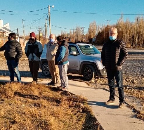 El Intendente de Alto Río Senguer, Miguel López Gutiérrez y el Secretario de Gobierno, Jorge Barrera recorrieron esta mañana el sector donde se realizará la obra y los monoambientes municipales junto a Carlos Cardonati propietario de la empresa responsable de la obra.
