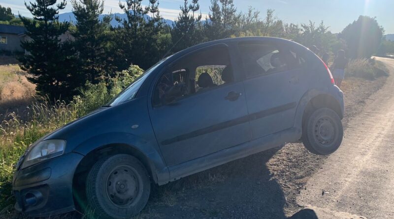 Ocurrió ayer sobre la ruta provincial n° 71 en cercanías a Trevelin. El parte policial indica que personal Policial se encontraba realizando controles y observaron que un vehículo (foto) realizaba una mala maniobra quedando colgado sobre la banquina.