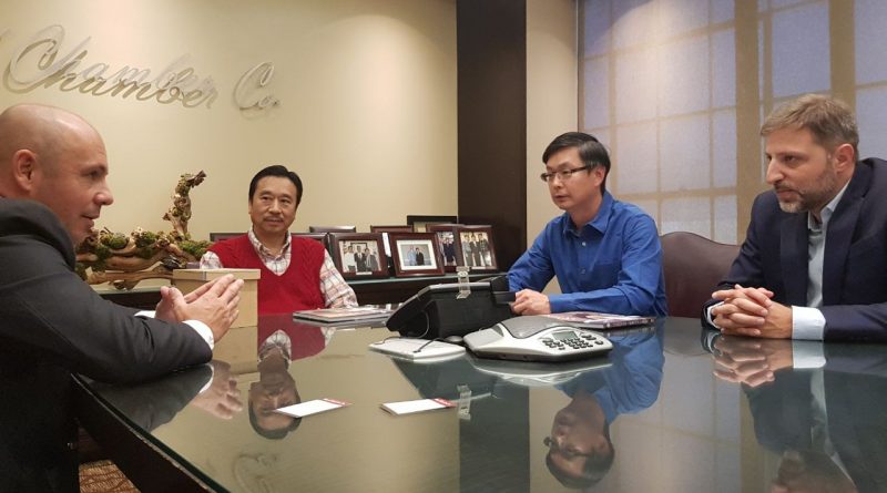 Ricardo Sastre estuvo por estas horas en las instalaciones principales de Red Chamber en Los Ángeles, Estados Unidos, reunido con Ming Bin Kou, propietario de la firma; Marcelo Mou, CEO de Red Chamber CO Argentina SA; e Ignacio Bellorini, Abogado de la Empresa en Puerto Madryn.